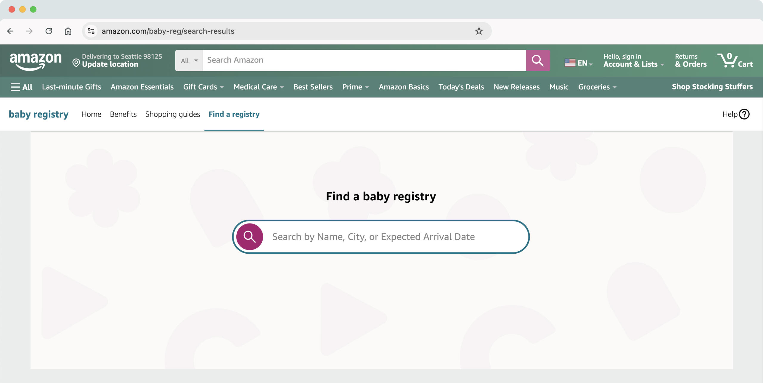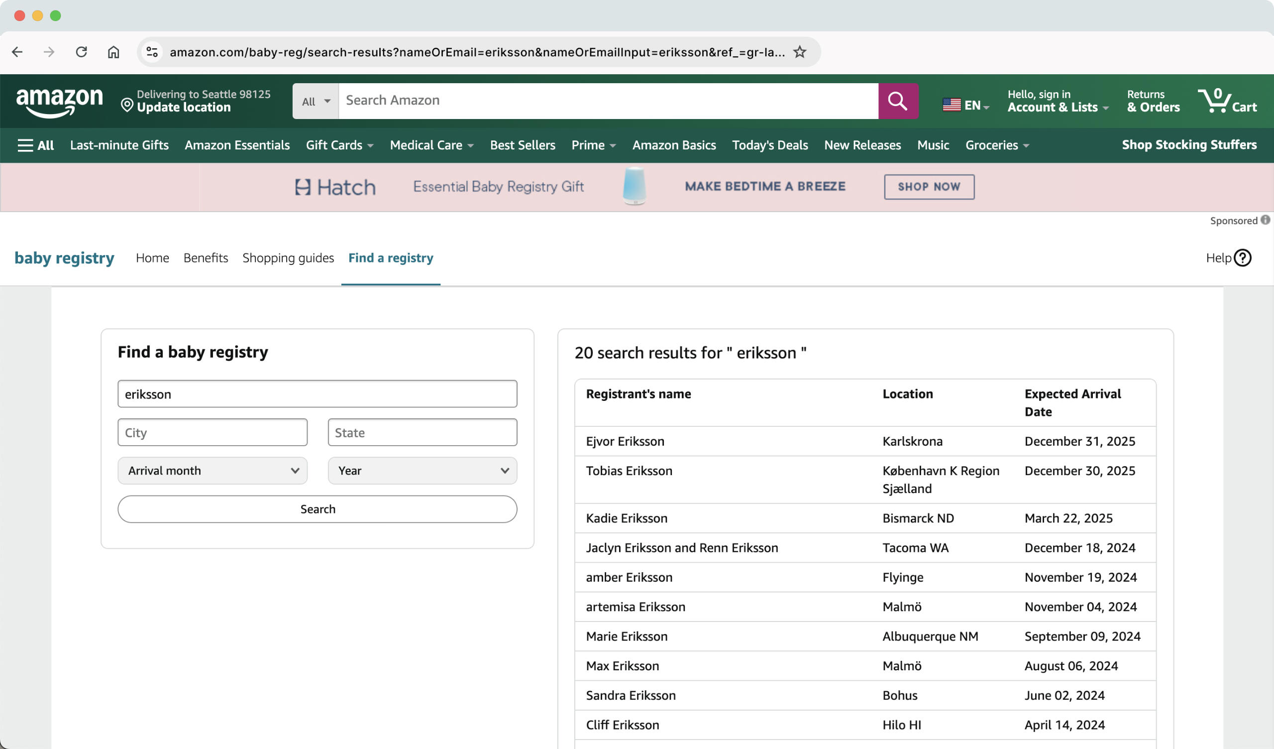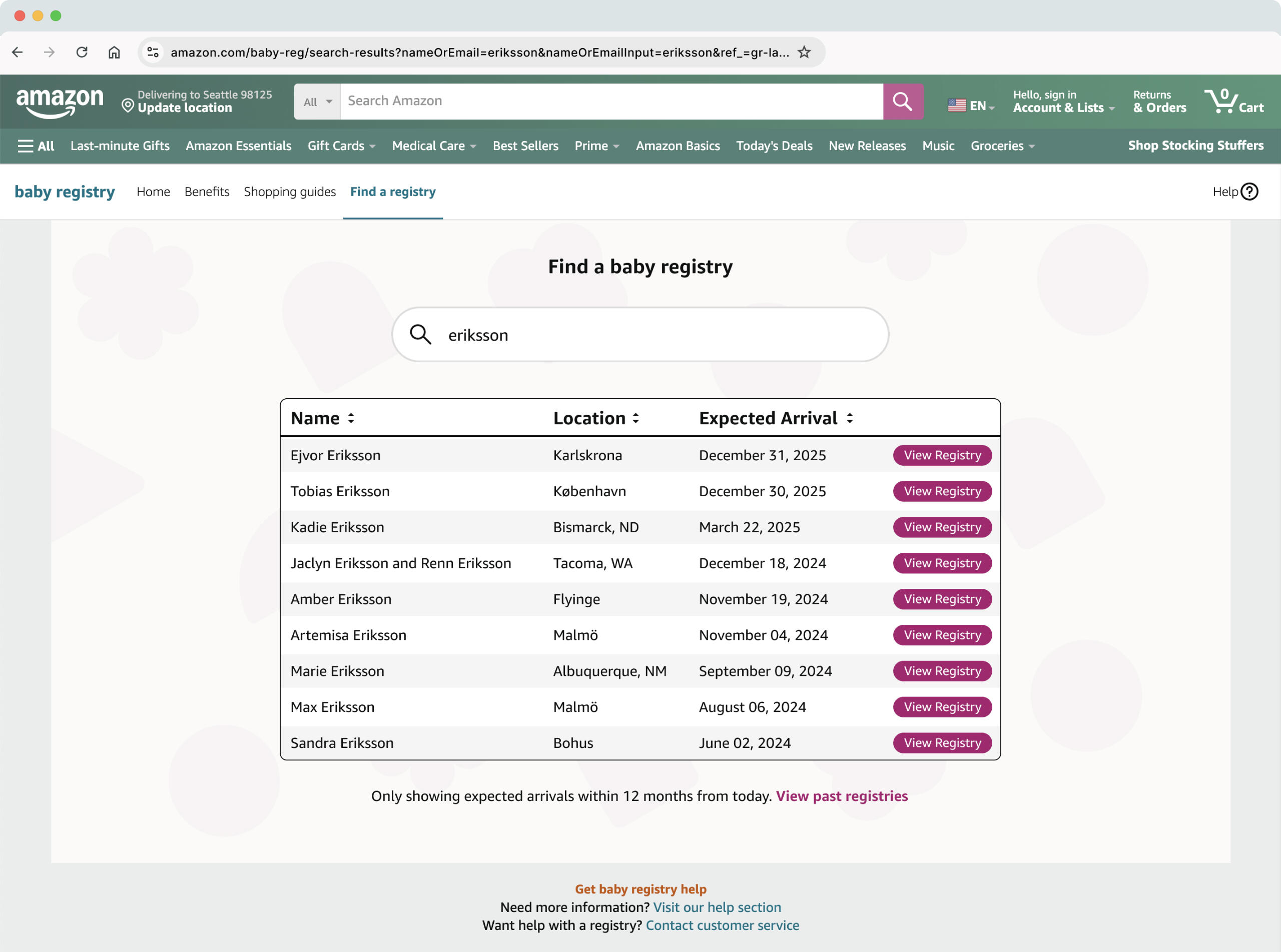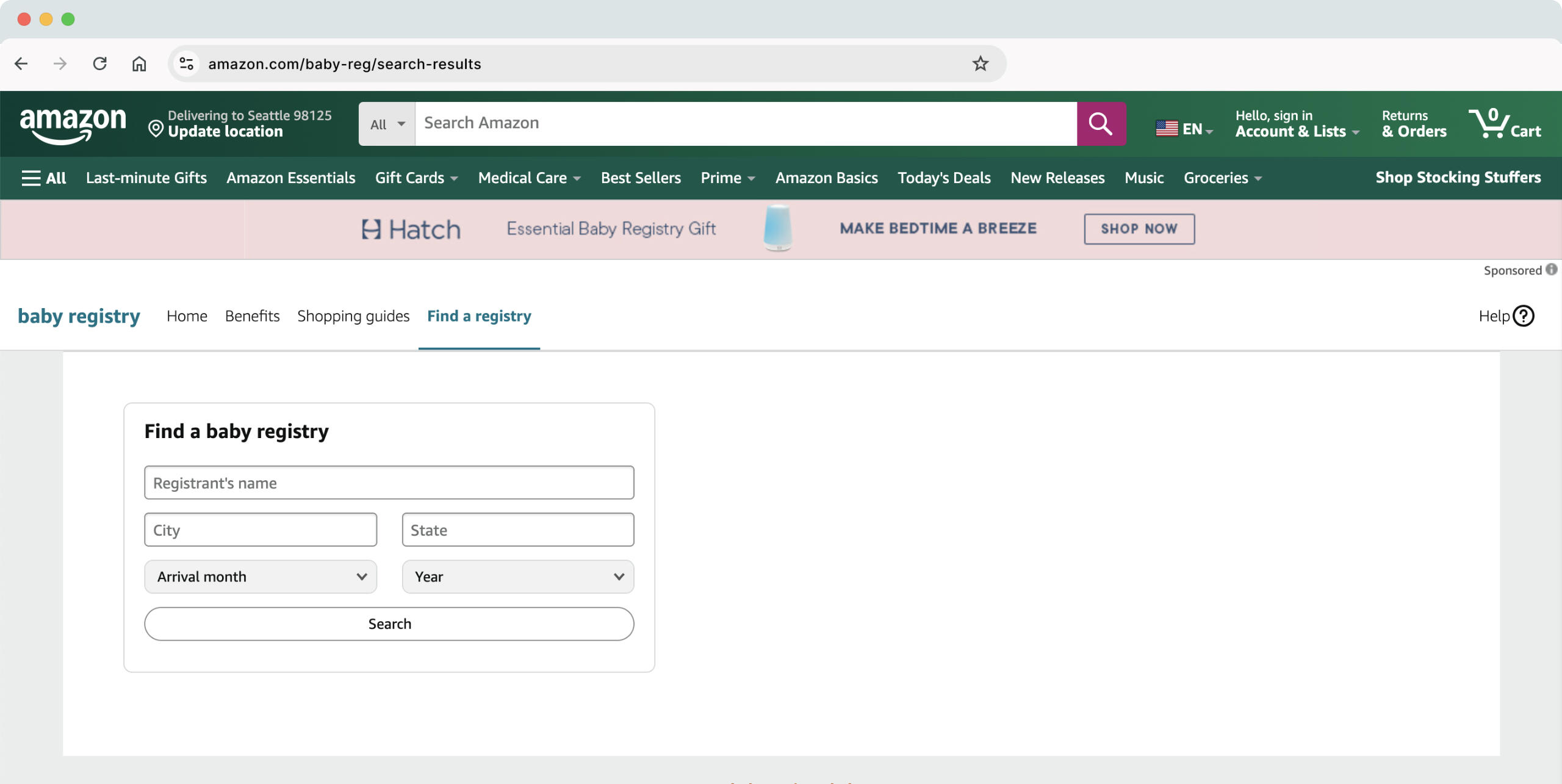 After going back to the search results, we clicked on the 2nd link: "Baby Registry Search" and were brought to this page where we could directly search for the registry.Potential Issues