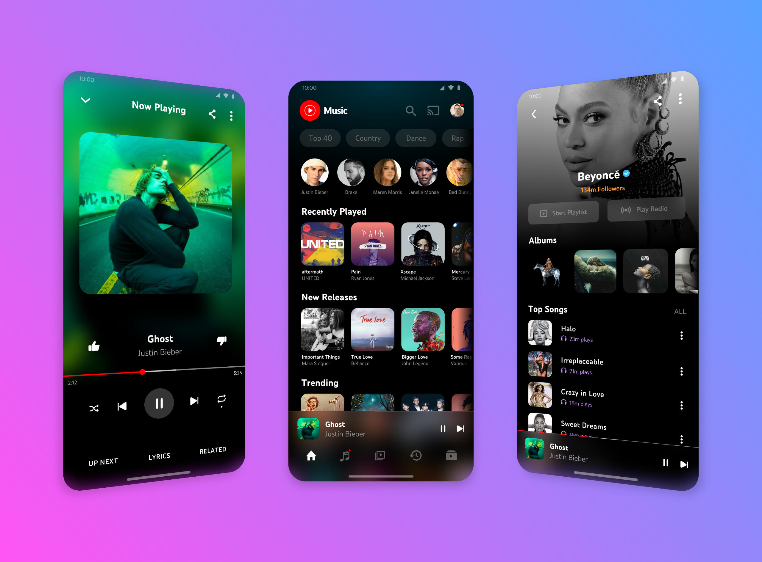 As a personal project, I challenged myself to redesign the YouTube Music mobile and tablet UI while learning Adobe xD for the first time. This project was an opportunity to dive into a new tool, experiment with design workflows, and reimagine a popular platform with a focus on usability and visual appeal.
