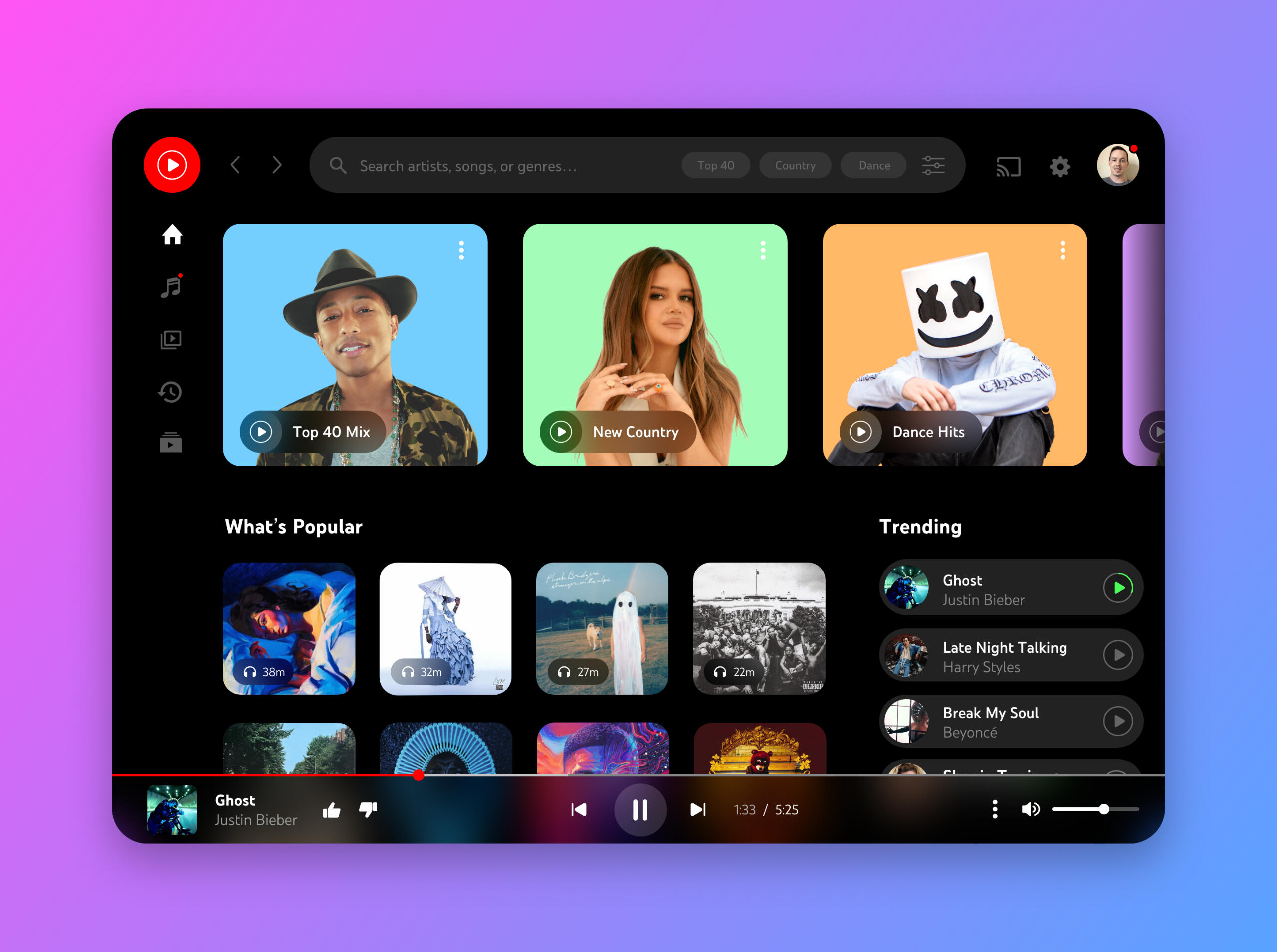 Introduced a cleaner tab system and better organization of playlists and recommendations.