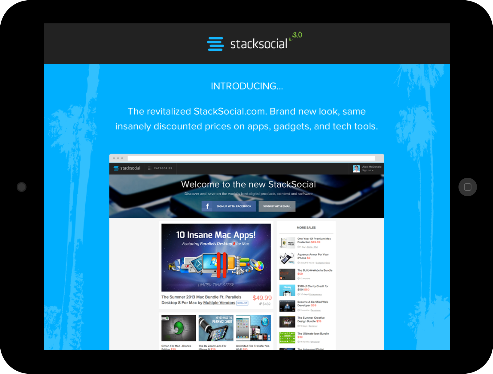 Next, I led a comprehensive website redesign to support the company’s rapid growth. The goal was to create a clean, intuitive interface that made discovering and purchasing curated tech deals effortless for users. By streamlining navigation, enhancing visual hierarchy, and optimizing the checkout flow, the redesign improved usability and positioned StackSocial as a leader in multi-channel e-commerce.The updated design seamlessly integrated with the company’s new branding and provided a scalable foundation for future growth, including mobile and tablet platforms.