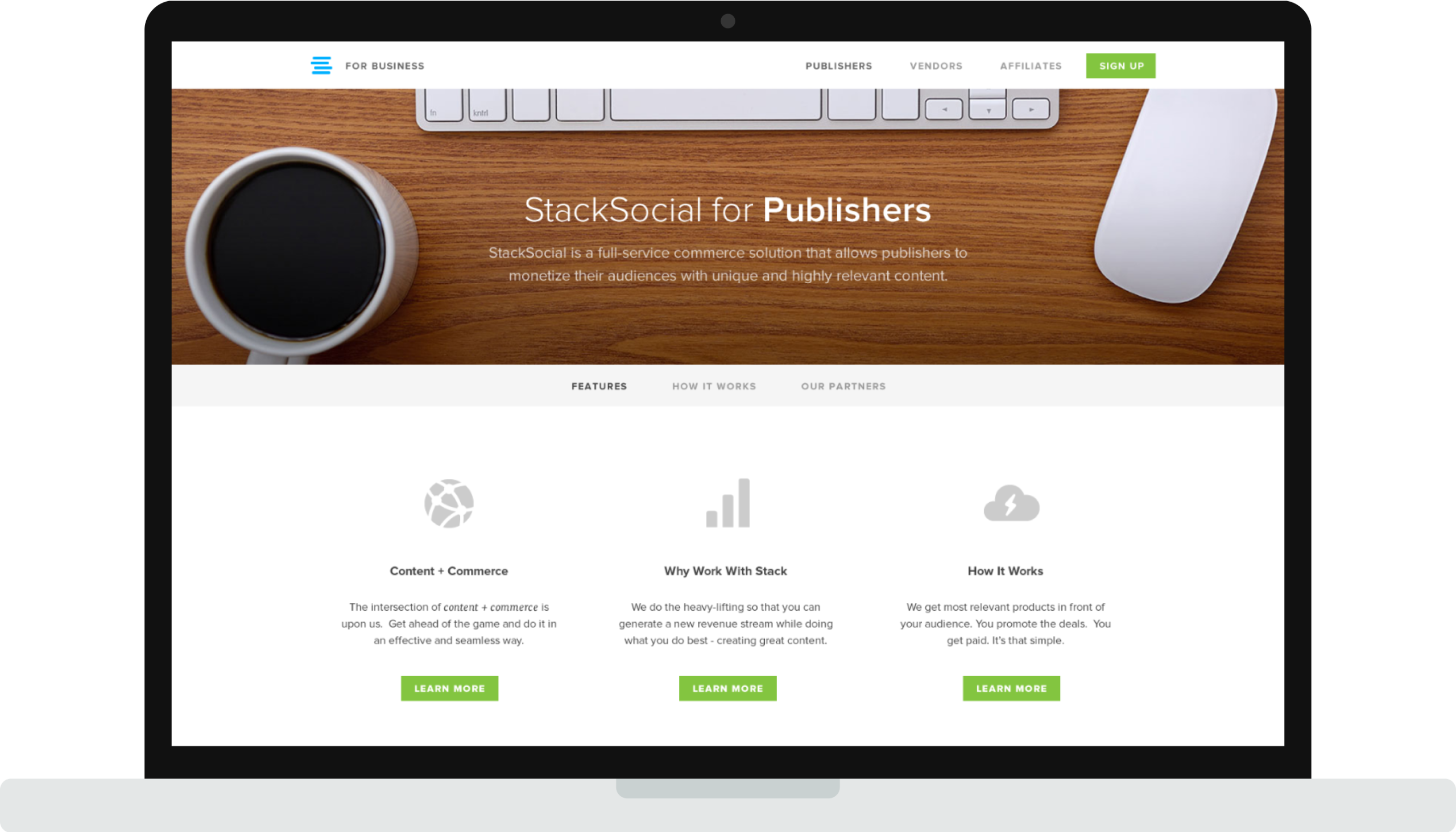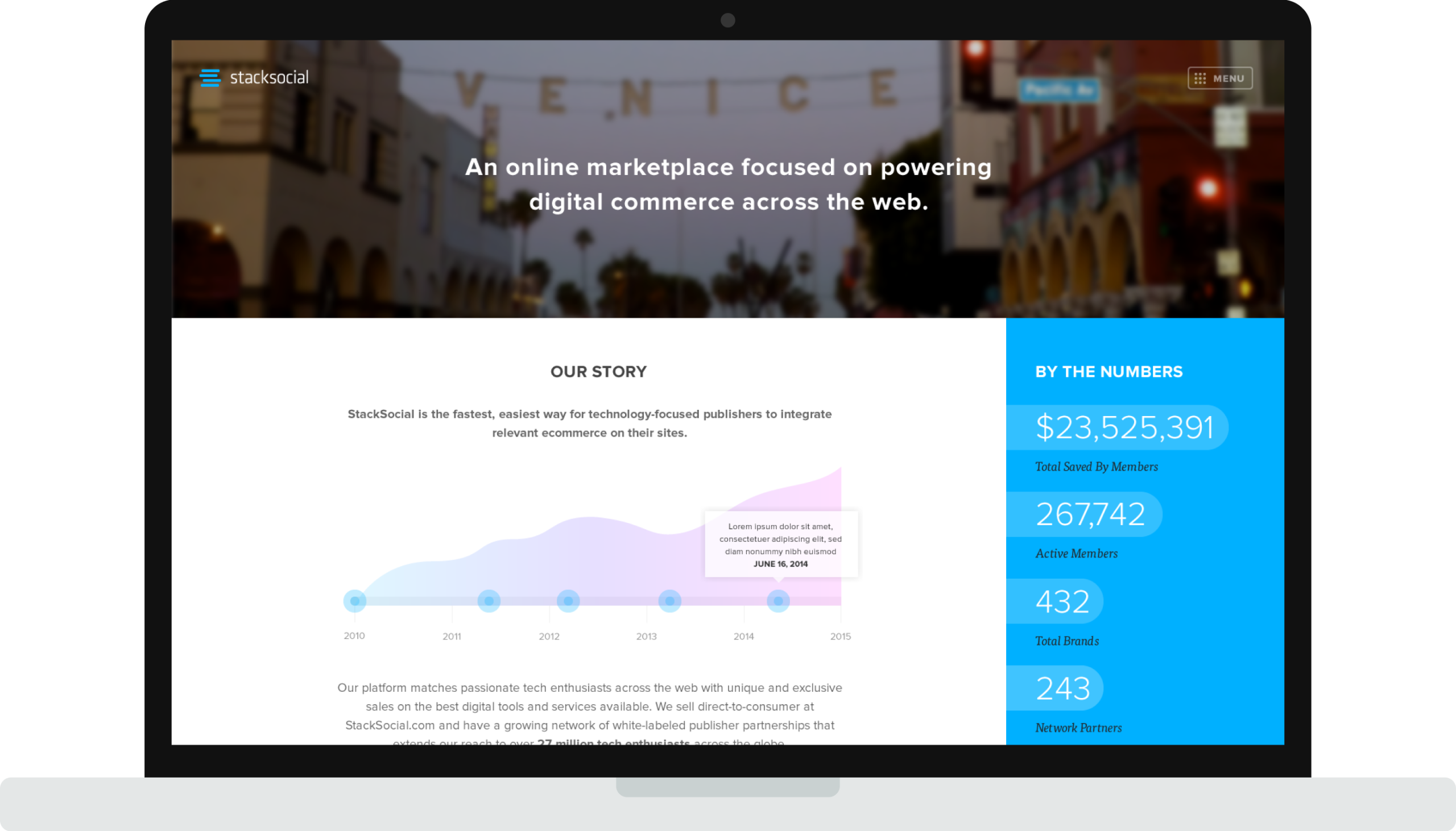 As one of the first employees at StackSocial, I played a pivotal role in establishing the company’s design strategy and user experience. My focus was on creating a cohesive, innovative, and trustworthy brand identity that could support the growth of a thriving tech marketplace and e-commerce platform.