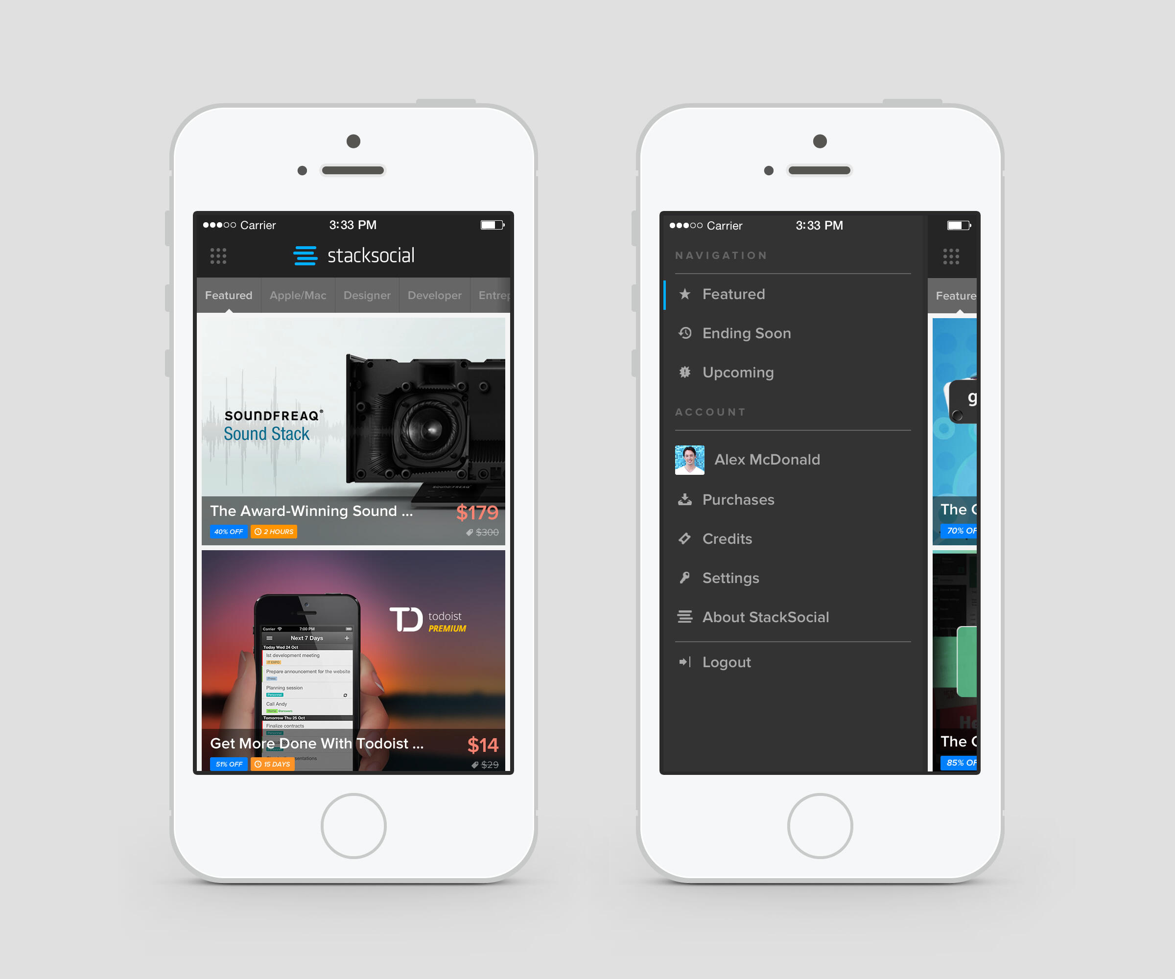 I joined StackSocial as employee #8 and the company’s first full-time in-house designer, starting as Visual/UI Designer before becoming Lead Designer. During my tenure I oversaw a comprehensive rebrand, designed the company’s first mobile app, and assembled a team of junior designers to support the e-commerce company’s rapid growth. I worked closely with the founder, business development team, and developers to shape StackSocial's digital presence across multiple platforms and pave the way for future innovation. In 2014, StackSocial evolved into StackCommerce and was acquired by private-equity firm TPG in 2021.