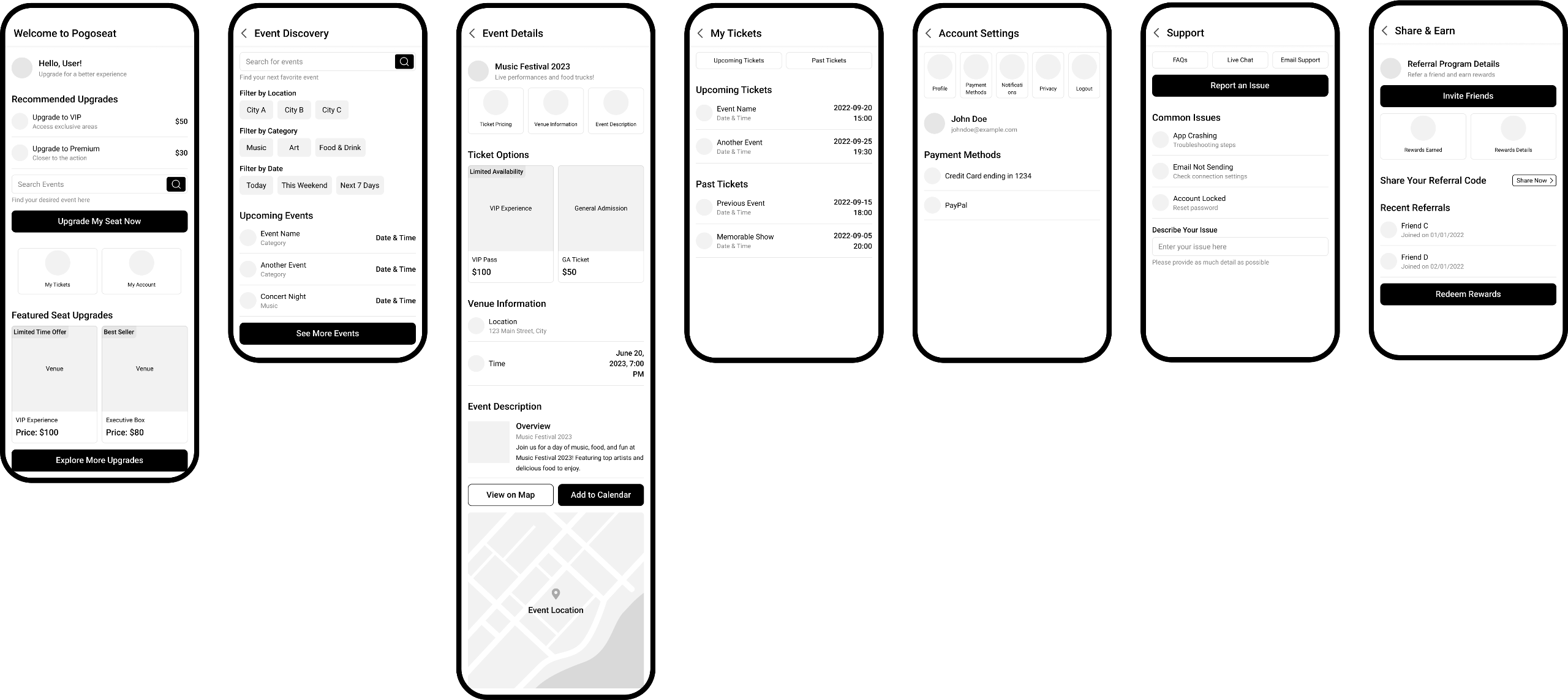 Pogoseat, a mobile ticketing platform, struggled with poor user retention due to a confusing navigation system and a cumbersome seat upgrade process. The app needed a redesign to provide a more intuitive experience for live event attendees.